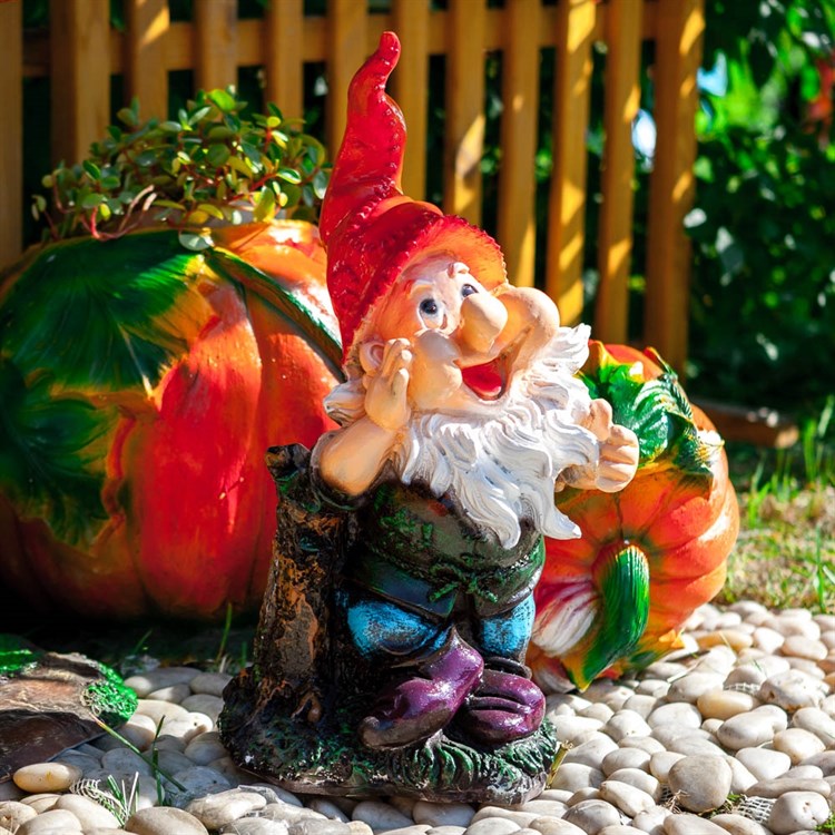 Фигурка гном-мечтатель, используется для декора садово-паркового ландшафта, детских площадок. Изготовлена из полистоуна.