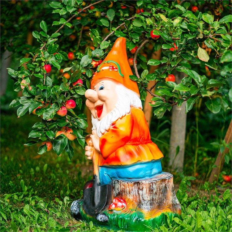 Добавьте в ваш сад нотку волшебства и тепла с фигурой «Гном на пне» F08199 — идеальный выбор для создания уникального и дружелюбного пространства на свежем воздухе!