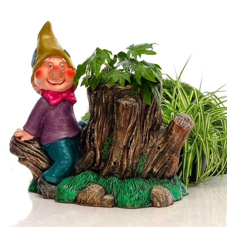 Садовое кашпо для декора Гном на пне .Материал изготовления стеклопластик.Прекрасно впишется в ландшафт вашего сада.