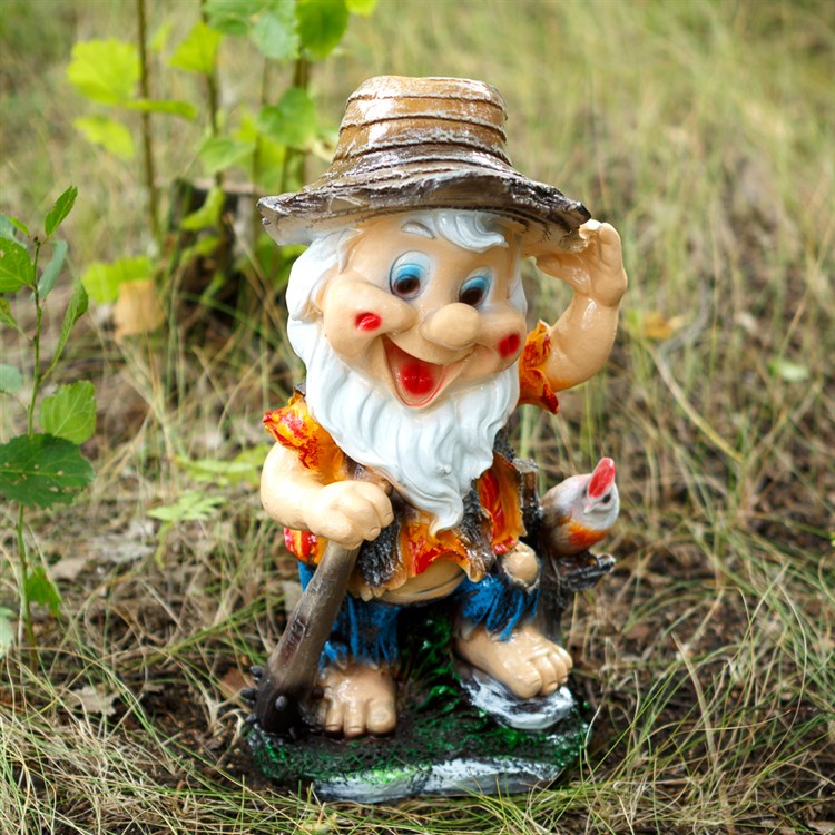Настоящий дачник всегда стремится украсить свой садовый участок и создать в нем уютную атмосферу. В этом может помочь садовая фигура Гном с дубинкой, которая призвана приносить добро и поднимать настроение Вам и Вашим близким. Дубинка в руках у этого безобидного гномика служит символом защиты добра от зла. Данное изделие изготовлено из прочного материала – полистоуна и покрыто влагостойкой краской, благодаря чему способно находиться на улице круглый год.