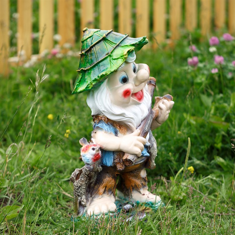 Садовая фигура гном с рогаткой для украшения ландшафта. Изготовлена из полистоуна для уличного декора территории. Милый гномик завораживает и создает настроение всем окружающим людям, детям. Позволяет окунуться в мир детства и улыбнуться. В нашем каталоге имеется большое разнообразие фигурок гномиков, вы сможете создать целую композицию у себя на даче. интересным вариантом будет, если разместить фигурки на детской площадке.