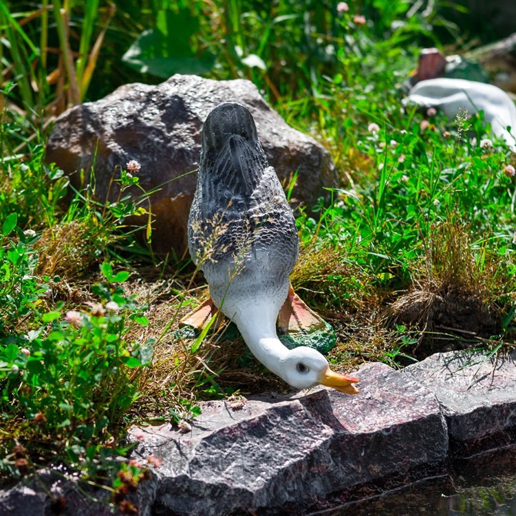 Садовая фигура гусь для украшения уличного ландшафта. Изготовлена фигура из полистоуна, влагостойкого композитного материала.