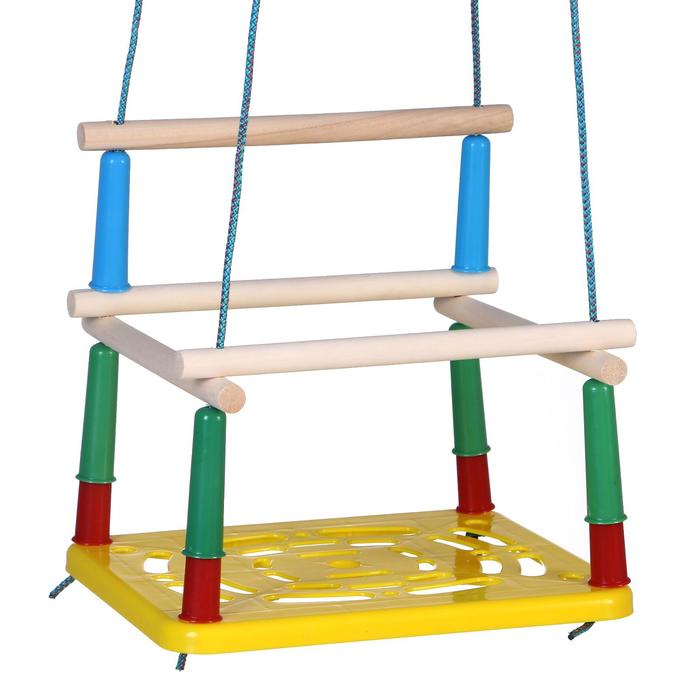 * Надёжная конструкция: пластмассовое сиденье размером 33×22 см выдерживает до 20 кг. Прочные верёвки длиной 1,5 метра входят в комплект.