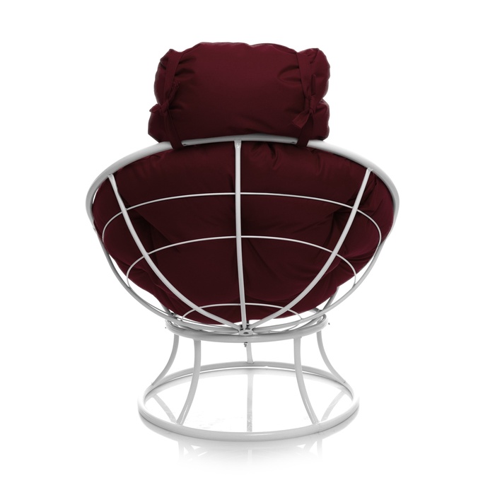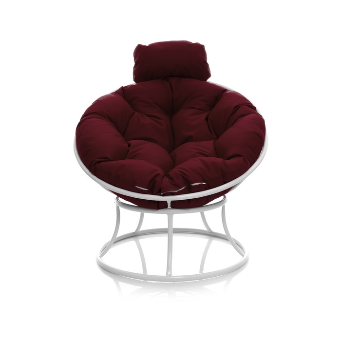 Кресло «Папасан», 77×81×68 см белое, бордовая подушка