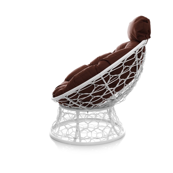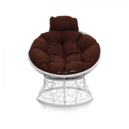 Кресло «Папасан» с искусственным ротангом, 77×81×68 см, белое, коричневая подушка