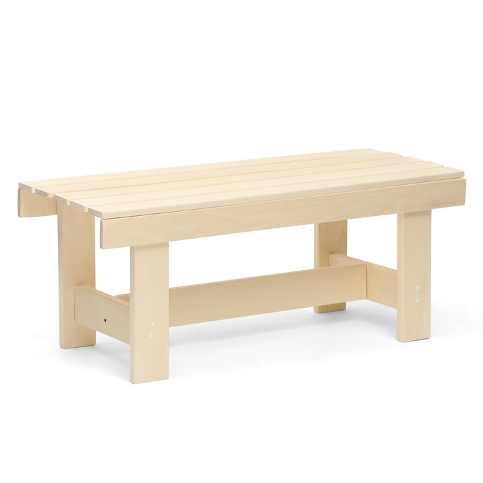 * Широкое и удобное сиденье: ширина в 45 см даёт достаточно пространства. Высота скамьи в 42 см считается эргономичной — на лавке удобно сидеть как взрослым, так и детям.