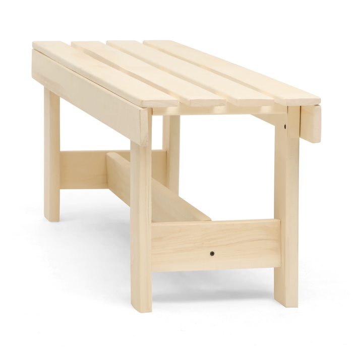 * Габариты для экономии пространства: длина в 130 см обеспечивает место для сидения. Узкая ширина (33 см) и высота 41 см делают скамью удобной для использования в условиях ограниченного пространства — у стены в бане или в небольшой садовой беседке.