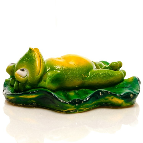 Садовая фигурка Лягушонок на кувшинке. Материал изготовления: полистоун (влагостойкий, для уличного применения). Подходит для декора пруда и водоема на дачном участке.