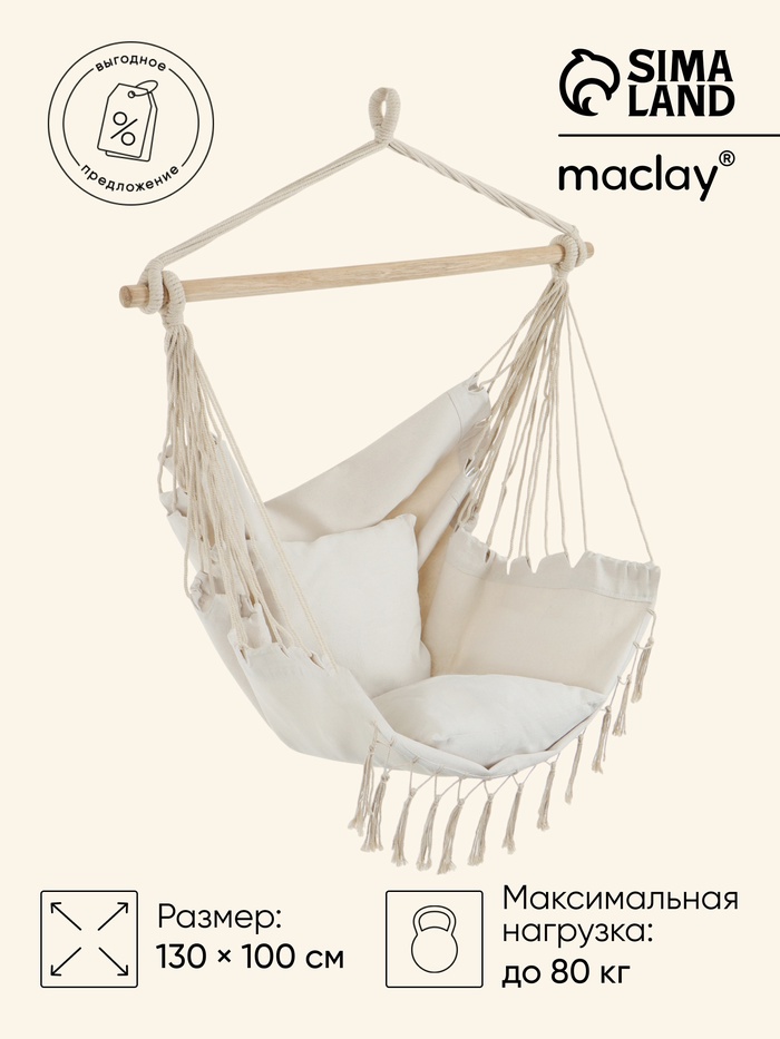 Гамак-кресло maclay, 60×80 см, подвесное, плетёное, бежевое