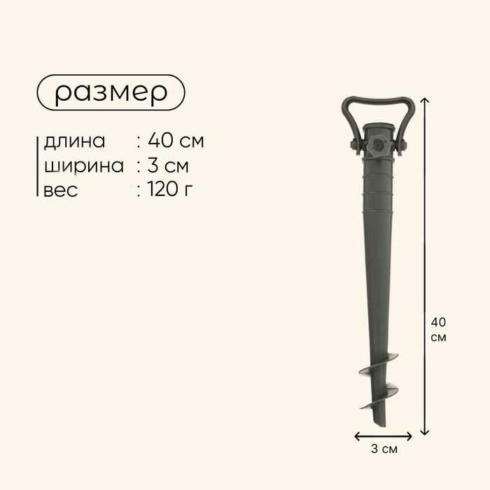 Подставка для крепления зонта в песке maclay, 40 см, для зонтов с диаметром стержня до 35 мм, зелёная