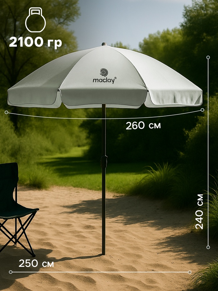 УЦЕНКА Зонт пляжный maclay, с УФ-защитой, d=260 см, h=240 см