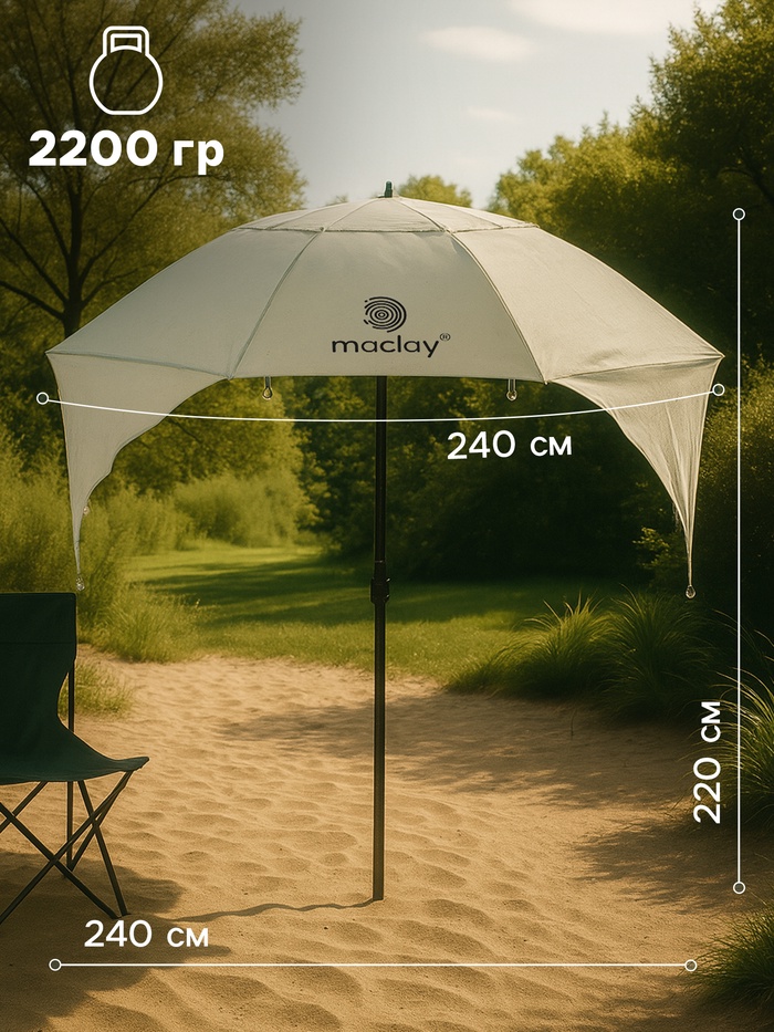 Зонт maclay - ваш надежный защитник от палящего солнца. Легко устанавливается и регулируется по высоте, обеспечивая комфортную тень в любом месте. Прочная конструкция и продуманная эргономика делают его незаменимым помощником на пляже, даче или пикнике. Выбирайте удобство и наслаждайтесь отдыхом без забот!