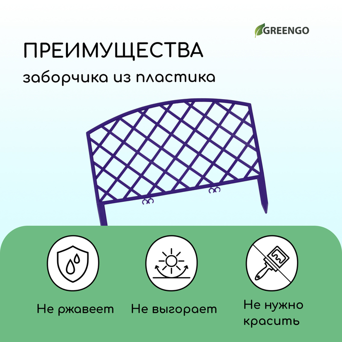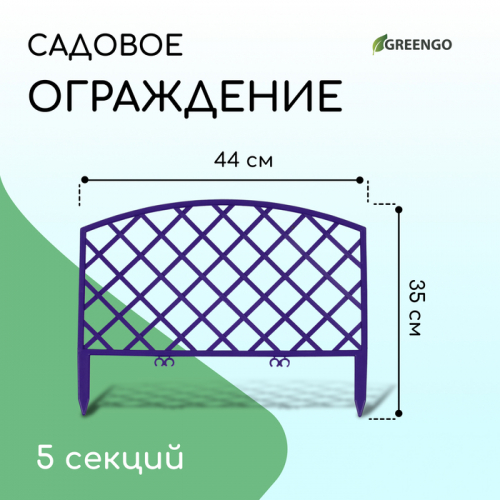 Ограждение декоративное, 35×220 см, 5 секций, пластик, сиреневое, ROMANIKA, Greengo