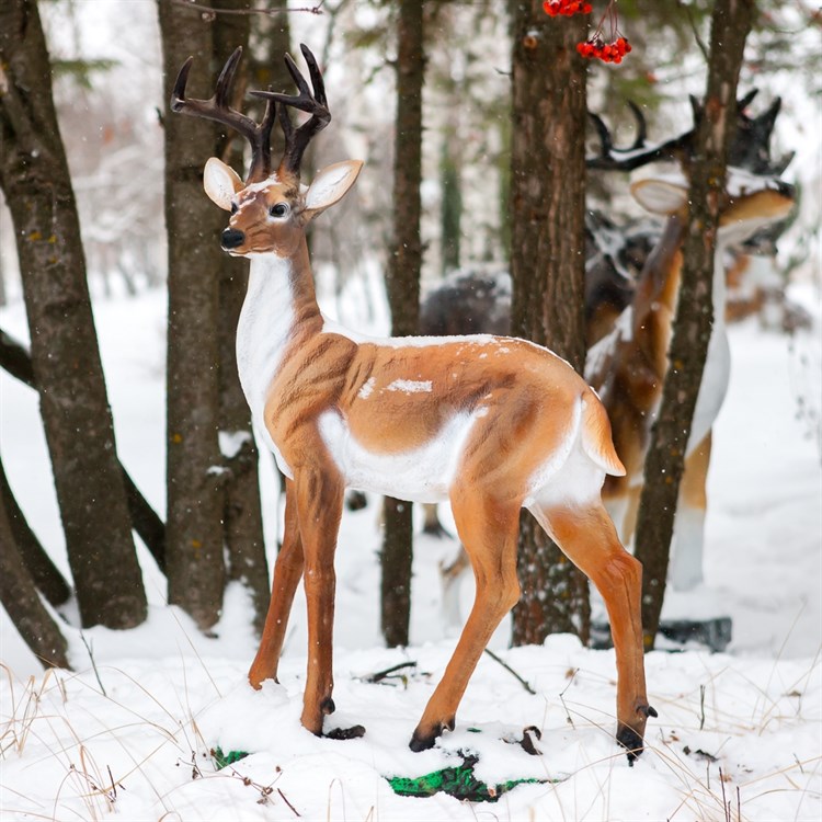 Садово-парковая фигура из стеклопластика Олень с большими рогами. Располагая такую фигуру у себя в саду, либо в парке, Вы создаете особую атмосферу дикой природы. Советуем дополнять композицию различными вариациями фигур диких животных, например, кабанами, зайцами и т.д.