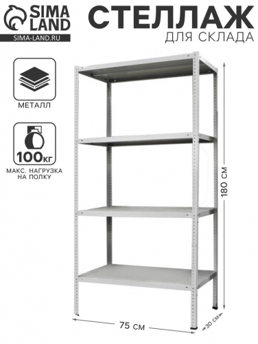 С размерами 180×75×30 см и четырьмя прочными полками, он способен выдерживать нагрузку до 100 кг на каждую полку. Это обеспечивает надежное и безопасное хранение ваших материалов, инструментов или архивных документов. Серый цвет придаёт стеллажу современный вид, который гармонично впишется в любой интерьер.