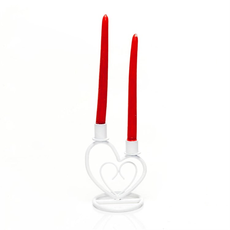 Подсвечник на две свечи арт. 607-22. Материал изготовления: металл. Покраска в черный, белый, красный цвета. Подходит для размещения на столе, полке, а также тумбочках, комоде или камине. Декоративные элементы: сердце. Является оригинальным подарком на праздники.