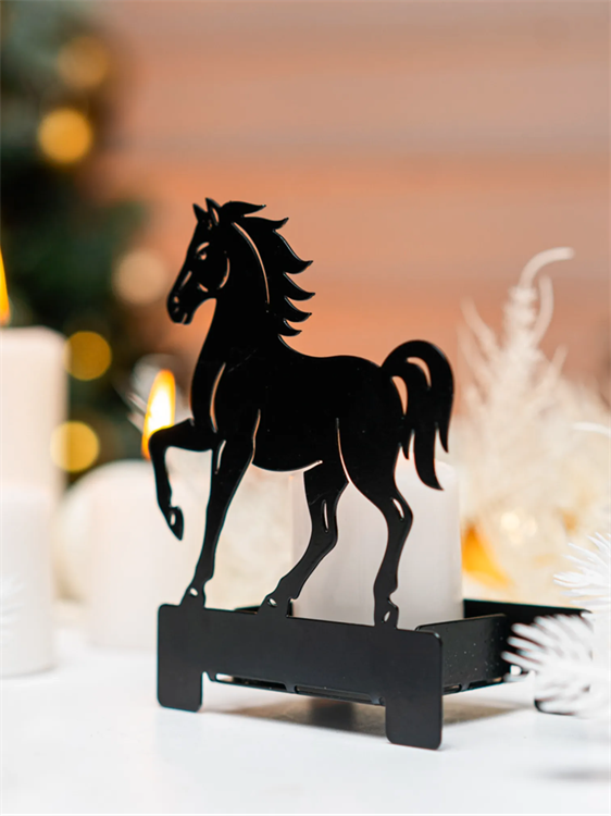 Металлический подсвечник «Лошадь» — это праздничный декор, который создаёт тёплую атмосферу и привлекает взгляд благодаря изящному силуэту Огненной Лошади — символа 2026 года. Лёгкое свечение свечи подчёркивает контур фигуры, превращая её в эффектный элемент новогоднего стола, каминной полки или уютного уголка в доме.