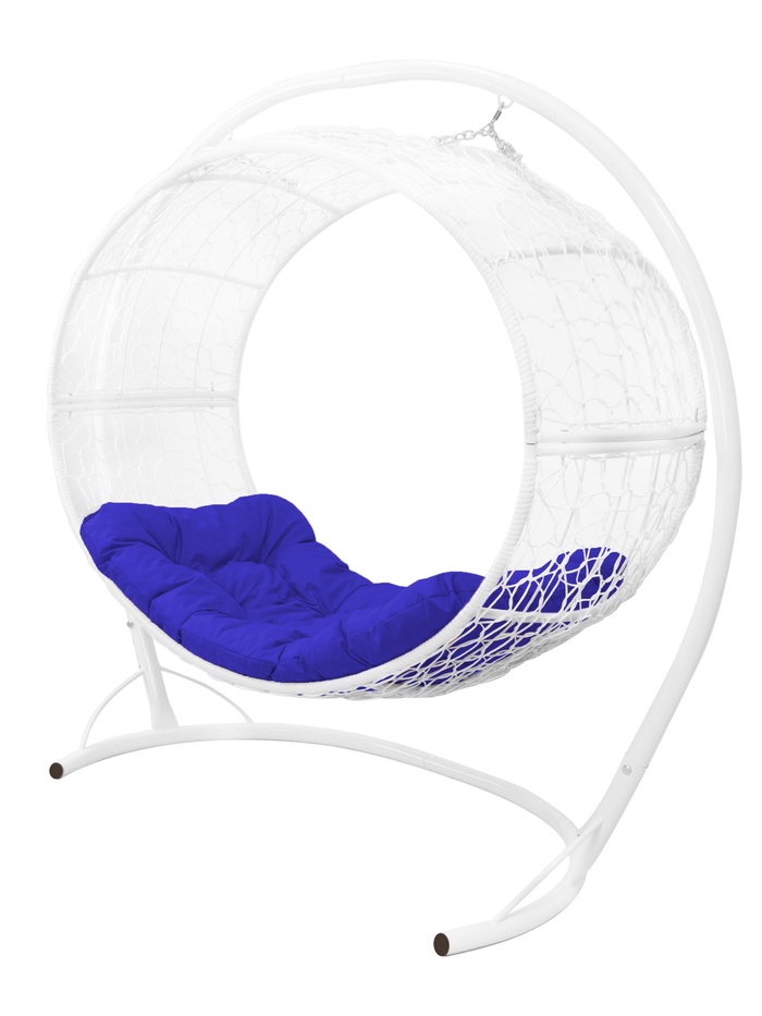 Подвесное кресло - кокон «Венера», с искусственным ротангом, 180×77×164 см, белое, синяя подушка