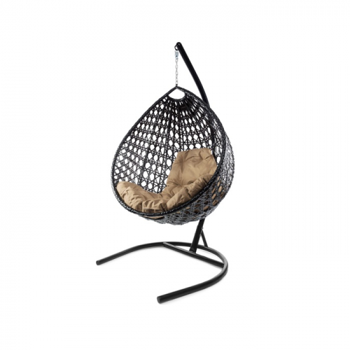 Подвесное кресло - кокон «Венера», с искусственным ротангом, 180×77×164 см, чёрное, бежевая подушка