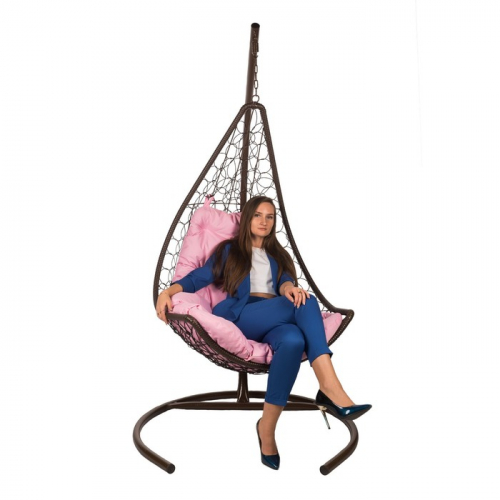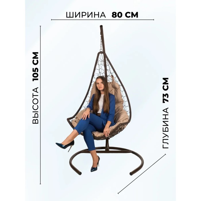 Подвесное кресло - кокон Wind, с искусственным ротангом, бежевая подушка, со стойкой, коричневое