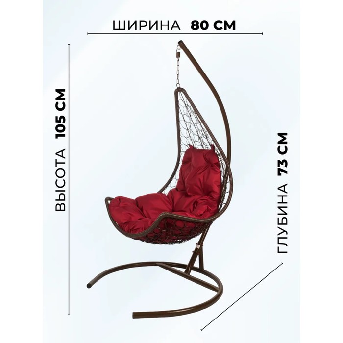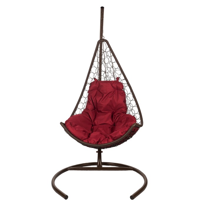 Подвесное кресло - кокон Wind, с искусственным ротангом, бордовая подушка, со стойкой, коричневое