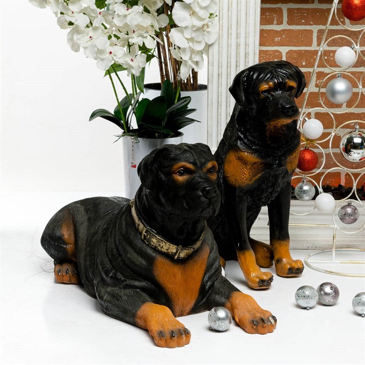 Садовая фигура Ротвейлер. Материал изготовления: влагостойкий стеклопластик. Подходит для уличного применения для декора садовых участков, входных групп. Покраска: в натуральный цвет.