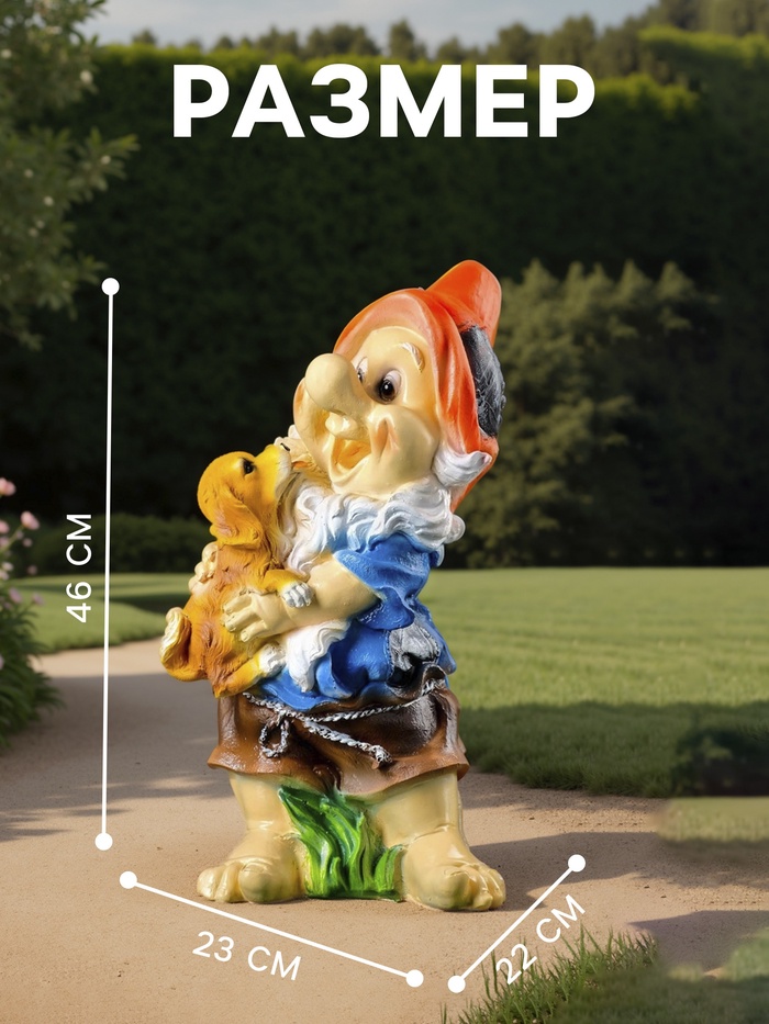 Садовая фигура из полистоуна «Гном с собачкой», 46×22×23 см