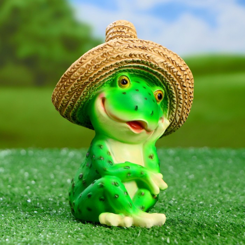 Садовая фигура из полистоуна «Лягушка в соломенной шляпе», 16.5×11×12 см