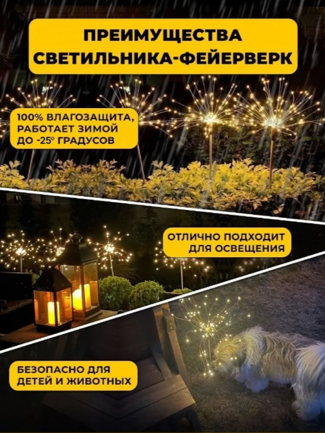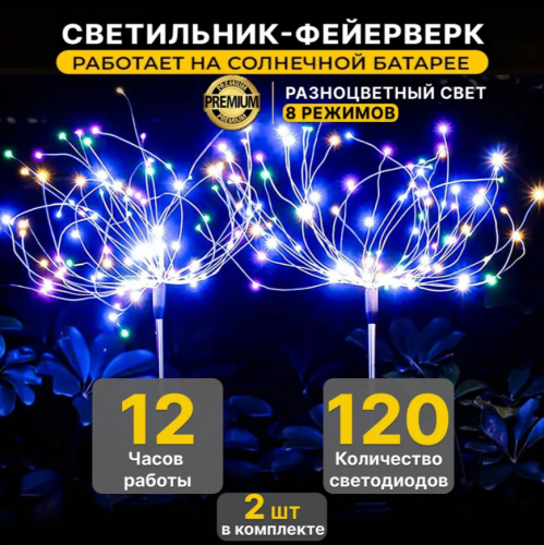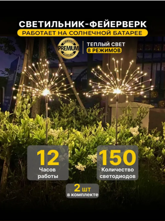 Садовый светодиодный светильник на солнечной батарее Фейерверк 150LED, высота 90см, теплый белый, 2 штуки