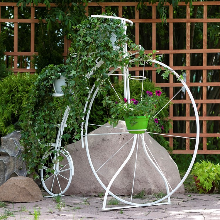Кованые подставки для цветов в виде велосипеда - это лучшая альтернатива настоящим велосипедам: сломанным, вышедшим из строя и приспособленным бережливой хозяйкой в цветочную подставку. Будучи не в силах окончательно расстаться со своим верным другом, садовницы очень любят мастерить из них подставки своими руками.