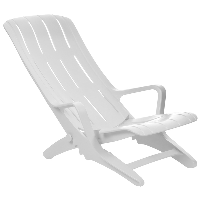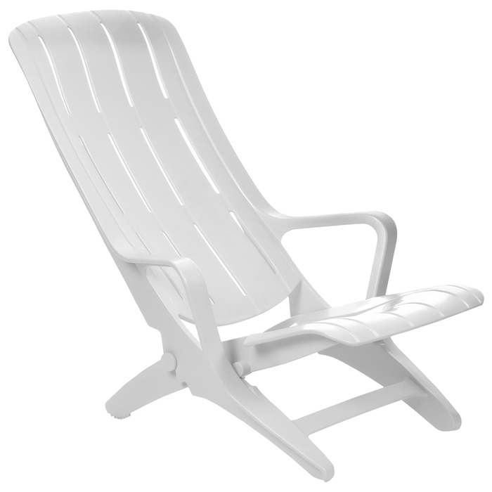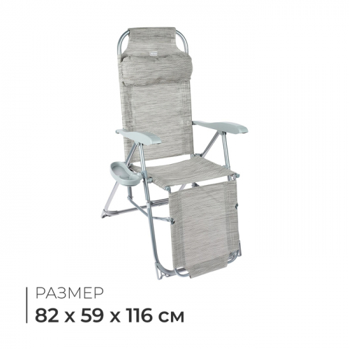 Кресло-шезлонг обеспечивает идеальный отдых на свежем воздухе. Изделие оснащено спинкой, которая легко фиксируется в удобном положении. Также предусмотрены широкие подлокотники для максимального расслабления.