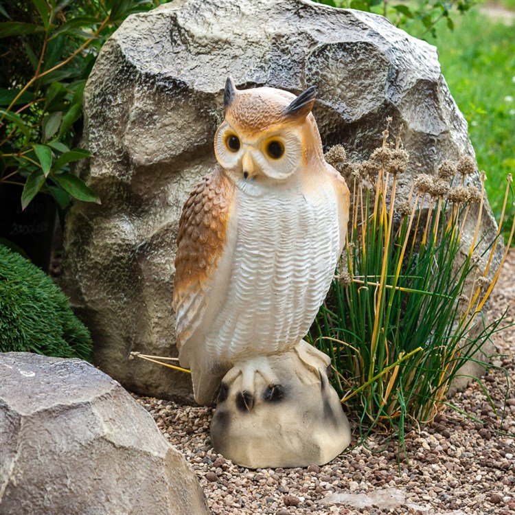 Садовая фигура сова имеет пециальное покрытие, которое защищает фигуру от внешних воздействий: ультрафиолетовых лучей, снега, дождя и ветра.