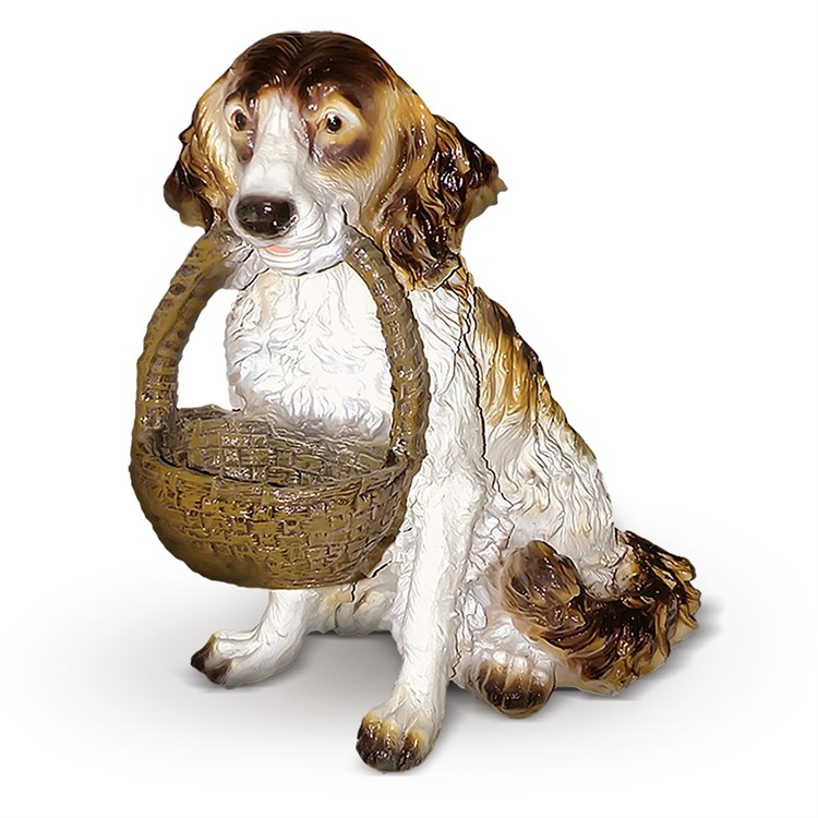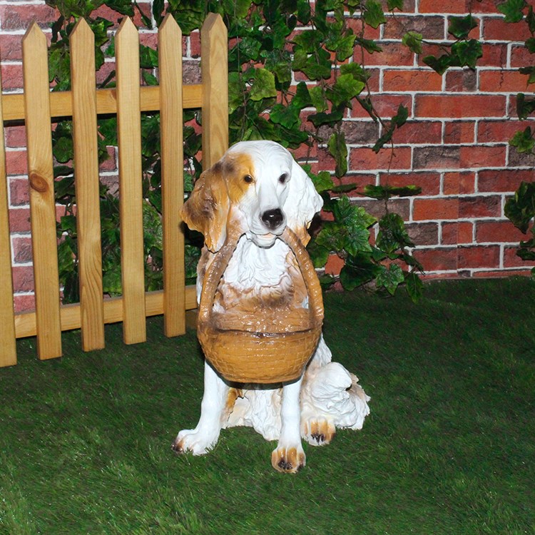 Садовая фигура Спаниель с корзиной. Материал изготовления: полистоун (влагостойкий, для уличного применения). Можно использовать для декора дачных участков, в ландшафтном дизайне, для новогоднего декора.