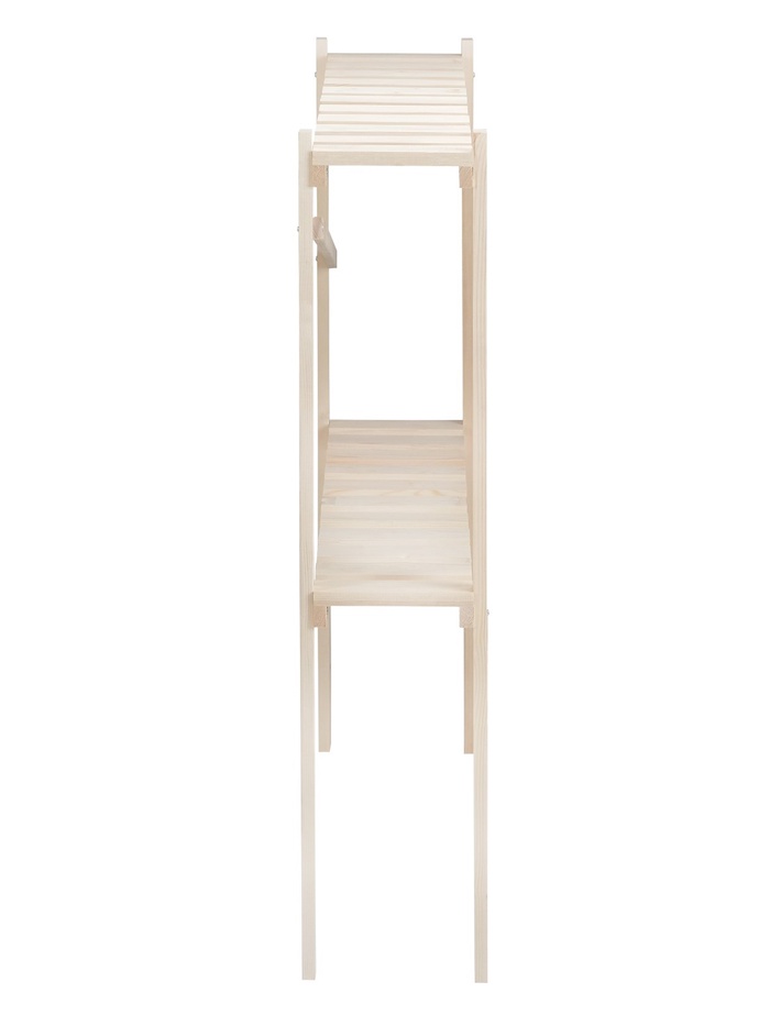 Деревянный стеллаж, 2 полки — идеальное решение для организации пространства на вашей даче или в доме. Изготовлен из натуральной сосны, он подчеркнет естественный стиль и добавит уют в любое помещение.