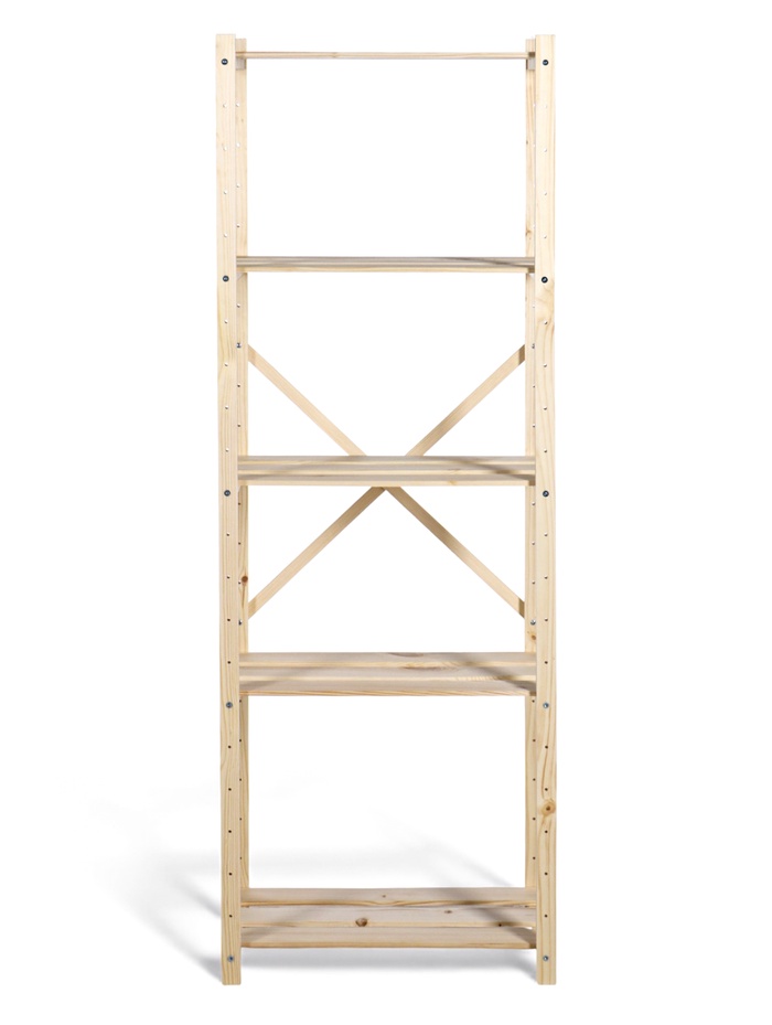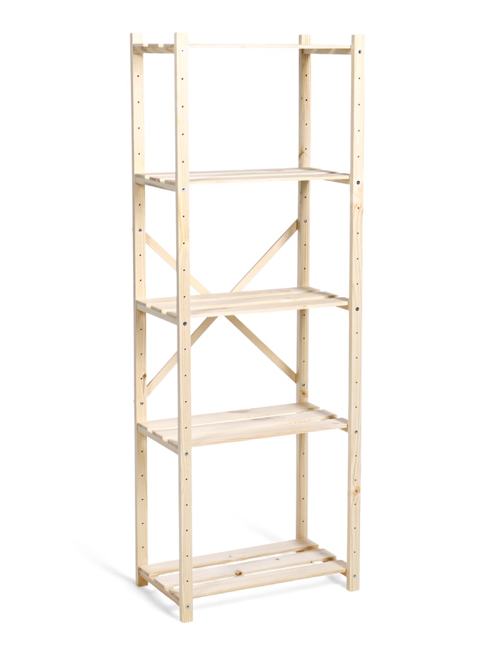 * Пять регулируемых полок: вы самостоятельно задаёте расстояние между ярусами. На стеллаже разместятся и высокие вазы, и стопки книг, и коробки с вещами.