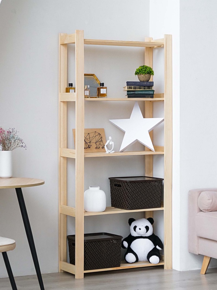 * Надёжный материал: стеллаж выполнен из дерева, что гарантирует его прочность и долговечность. Дерево привносит в интерьер комфорт и эко-нотки.