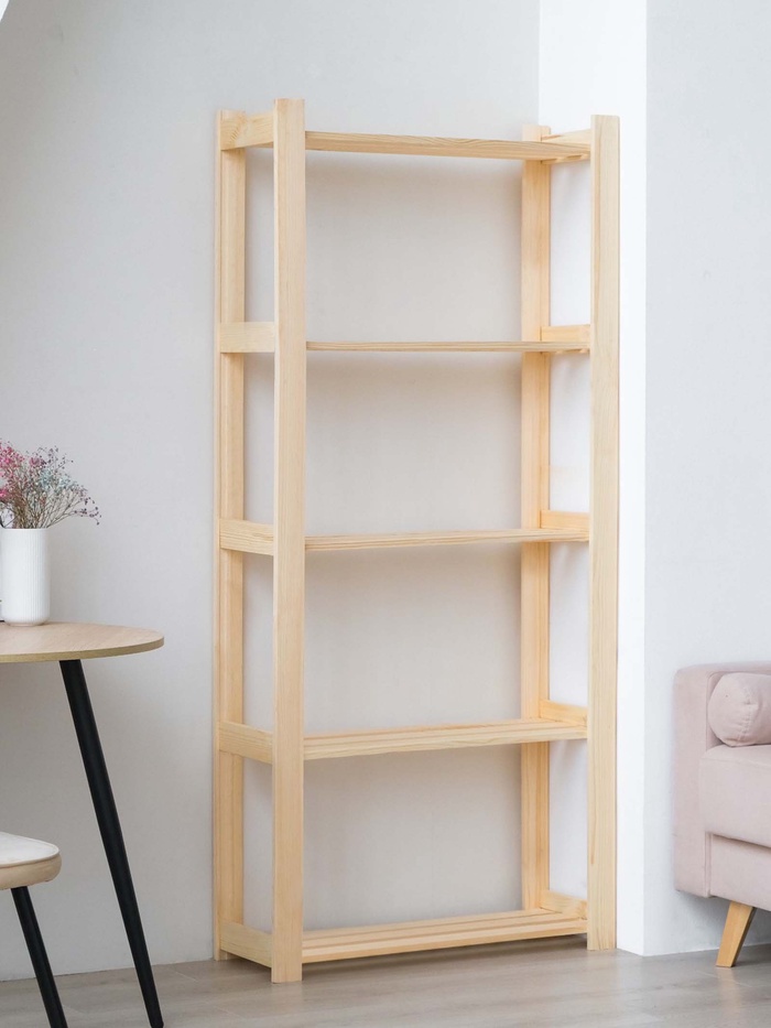 Усиленный деревянный стеллаж с пятью полками — это надёжное и стильное решение для хранения в доме или офисе. Компактные размеры делают его идеальным для небольших помещений, обеспечивая максимальное использование пространства.