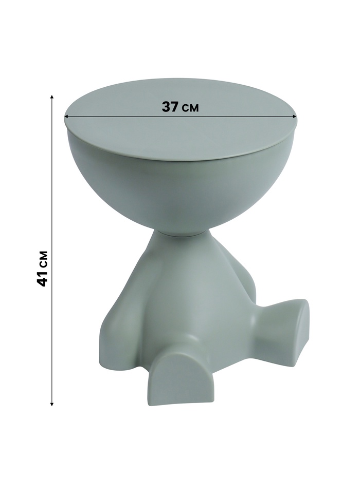 Столик в минималистичном стиле с элементами абстракции. Основание напоминает фигуру сидящего человека с плавными обтекаемыми линиями, создавая художественную выразительность. Чашеобразная верхняя часть выполняет функцию столешницы и одновременно служит местом для хранения мелких предметов — книг, журналов или декоративных элементов.