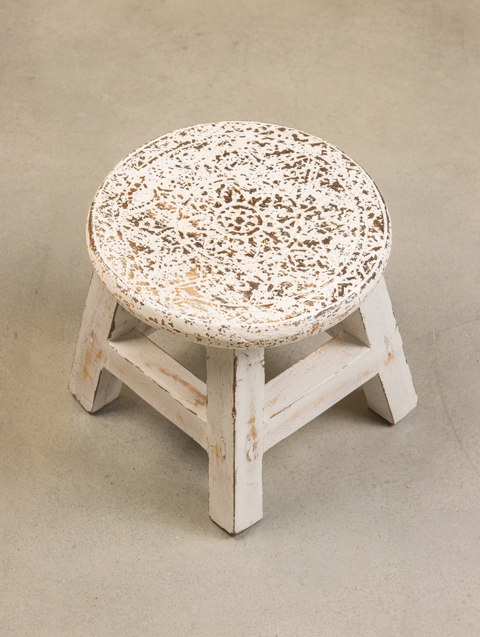 Табурет, 25×25×24 см, дерево албезия, белый