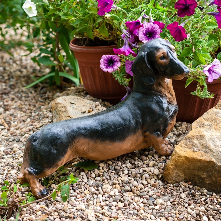 Фигура для украшения сада в виде Таксы. Размеры: (Д)35 * (Ш)20 * (В)25 см. Материал изготовления: влагостойкий стеклопластик. Данная модель украсит ваш сад, станет отличным подарком человеку, чья профессия или хобби связаны непосредственно с братьями нашими меньшими.