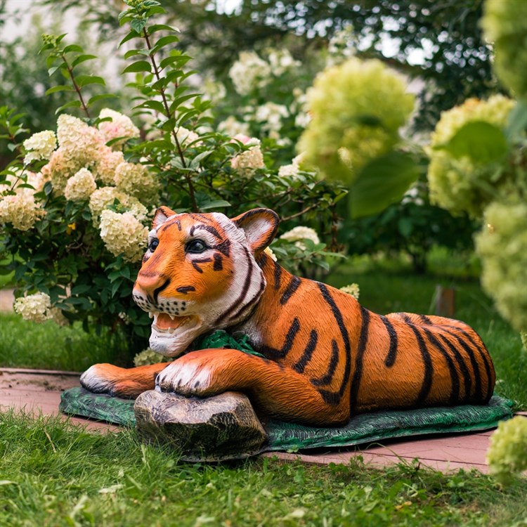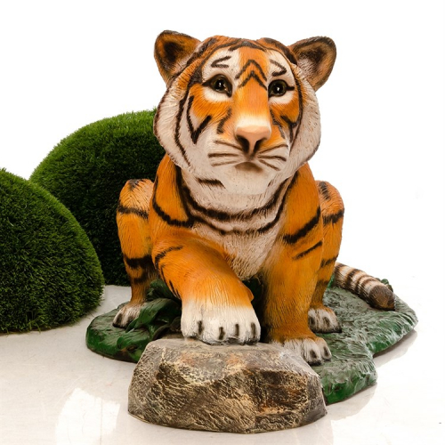 Садовая фигура Тигренок выполнена из стеклопластика. Способна стать хорошим украшением любого приусадебного участка, общественных зонах отдыха – парках и скверах.
