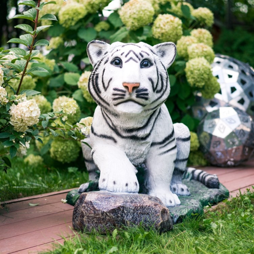 Садовая фигура Тигр выполнена из стеклопластика. Способна стать хорошим украшением любого приусадебного участка, общественных зонах отдыха – парках и скверах.