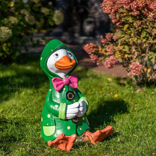 Можно комплектовать с другими фигурами уток из этой же коллекции, получится целая композиция для декора садового участка.