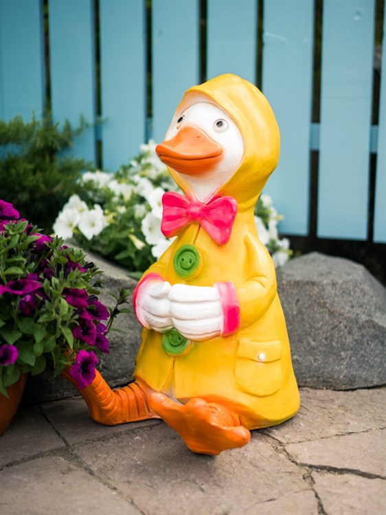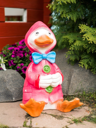 Можно комплектовать с другими фигурами уток из этой же коллекции, получится целая композиция для декора садового участка.