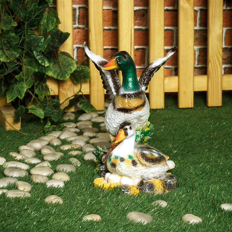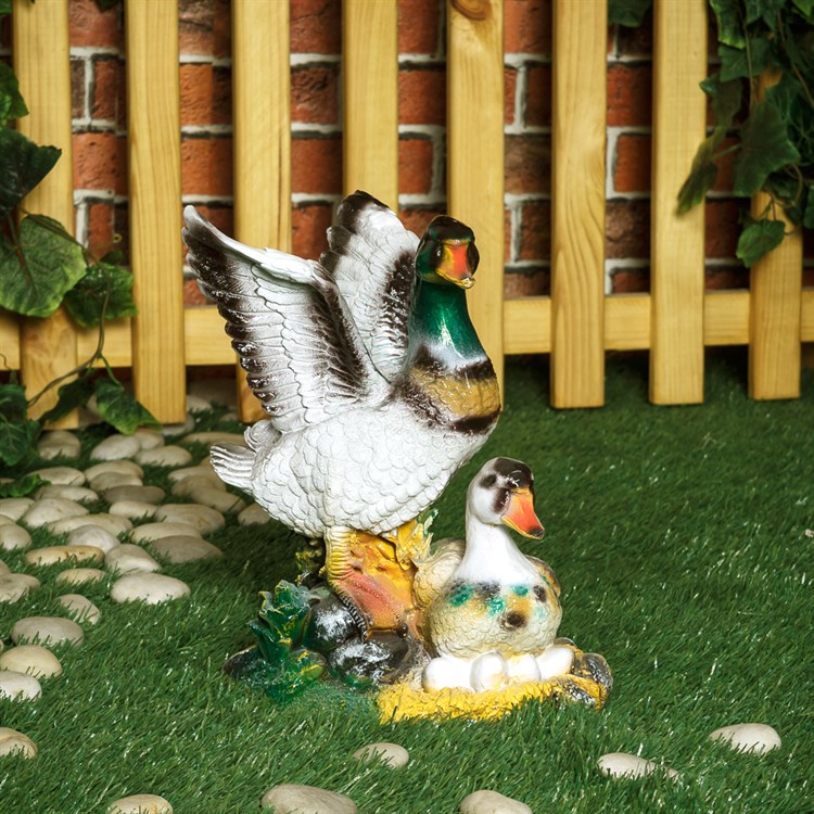 Садовая фигурка Утка с селезнем для декора сада, выполнена из полистоуна.