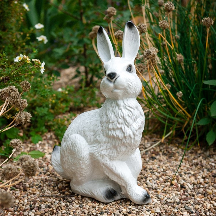 Заяц в точности повторяет окраску реалистичного зайца беляка. Выполнена из композитного материала. В комплекте с другими лесными животными можно создать целую композицию. Установить такую фигуру зайца можно в любом месте дачного участка.