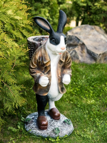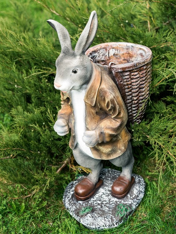 Декоративное кашпо Заяц с корзиной, арт. F01042-Gray