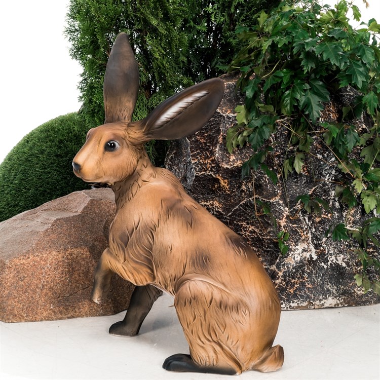 Установить такую фигуру зайца можно в любом месте дачного участка.