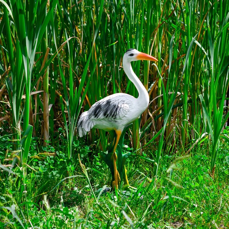 Садовая фигура журавля для украшения уличного ландшафта. Изготовлена фигурка из полистоуна - влагостойкий, ударопрочный композитный материал.