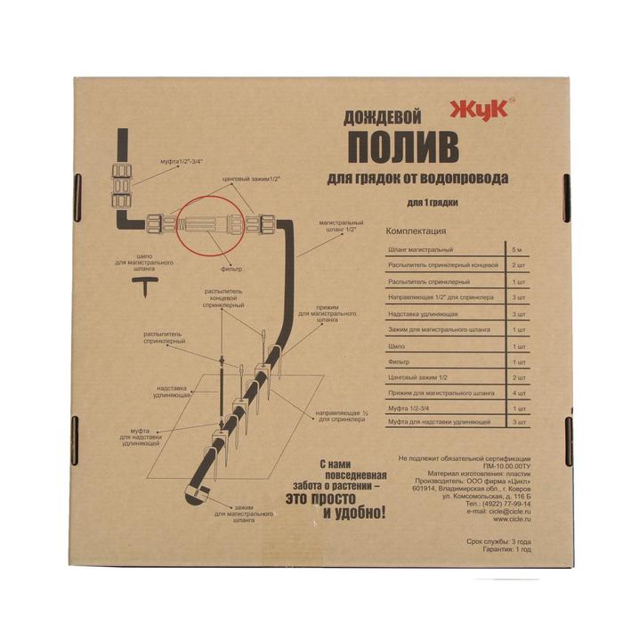 Набор дождевого полива грядок от водопровода, на 1 грядку, «Жук»